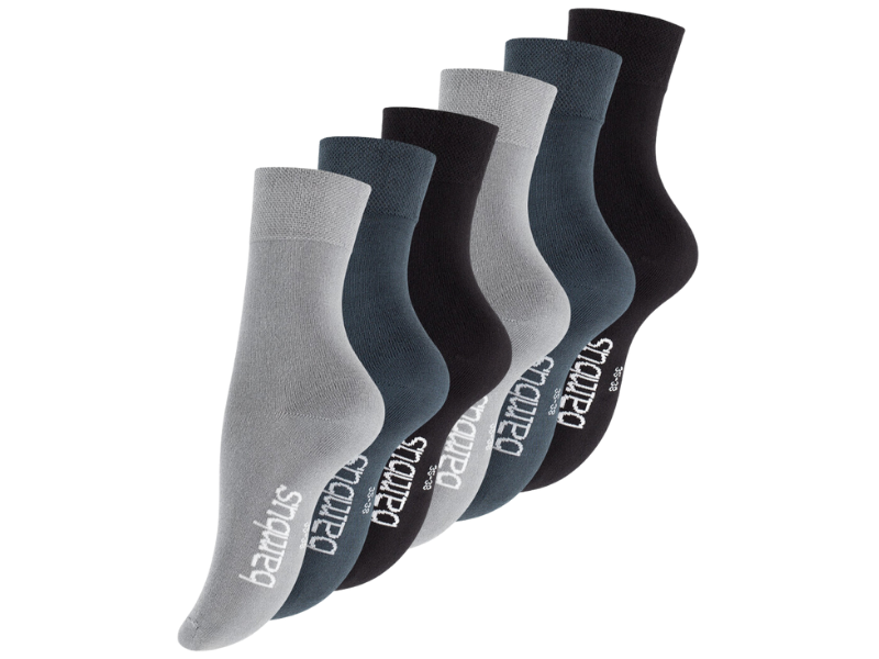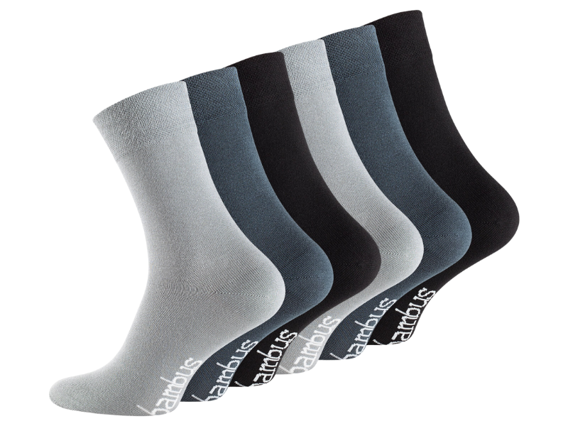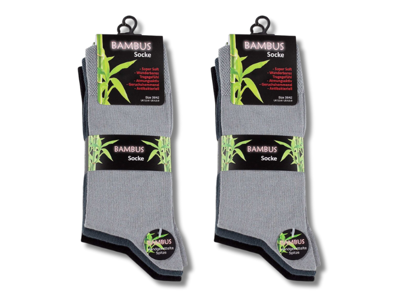 Set van 6 paar hoogwaardige bamboesokken in casual gemixte kleuren. Gemaakt van zachte bamboe, voelen deze sokken zijdezacht aan. Ze zijn zeer goed geventileerd, warm in de winter en koel in de zomer, antibacterieel en nemen goed vocht op. De comfortabele sokken zijn handgeketteld, waardoor er geen voelbare teennaad is, en ze zijn naadloos. Deze bamboesokken zijn tevens geurvrij. Met deze naadloze sokken zul je minder of zelfs geen last meer hebben van irriterende voeten, wat ideaal is voor mensen met gevoelige voeten. Onder op de voet zijn de sokken voorzien van een handige maataanduiding. Ideaal voor na het wassen, zodat de sokken gemakkelijk op maat kunnen worden gesorteerd. De sokken worden geleverd in diverse maten, per set van 6 paar.