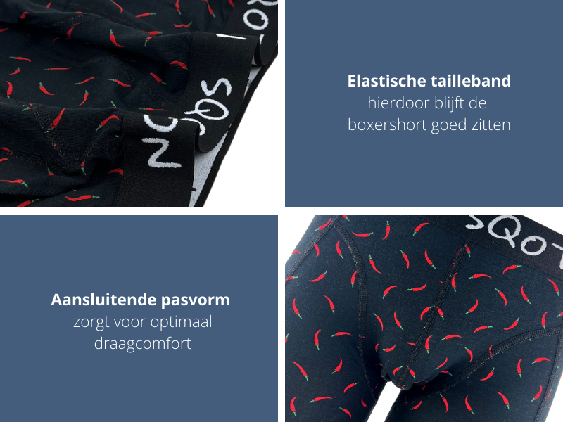 Set van 6 comfortabele heren boxershorts van het merk SQOTTON®. Deze boxershort set bestaat uit 2 effen kleuren en 4 in all-over print Dit model boxershort heeft een aansluitende pasvorm en een hoog draagcomfort. Dit zorgt ervoor dat het bodyfit boxermodel goed op zijn plek blijft zitten. Het materiaal van dit ondergoed bestaat uit 95% katoen en 5% elastaan. Katoen is een ademend materiaal is vocht absorberend en heerlijk zacht. Door de katoenen stof voelt de boxer niet te warm aan. De heren boxershort is afgewerkt met een brede elastieke band met de merknaam SQOTTON erop. De boxers hebben geen irriterend wasetiket, maar is voorzien van een geprinte wash seal. De heren boxershorts worden geleverd per 6 stuks en verkrijgbaar in de maten M t/m XXL.