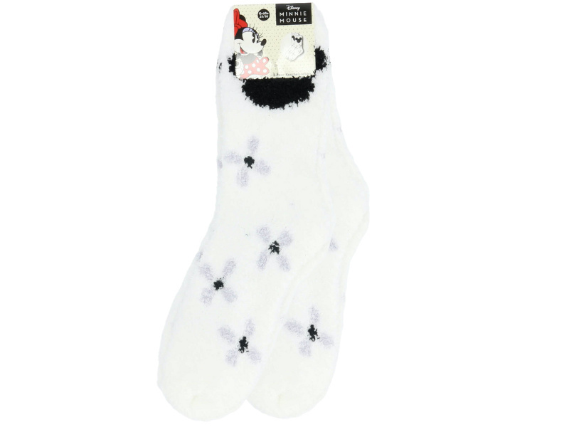2 paar fluffy huissokken in de kleur wit-zwart met schattige Minnie Mouse print. Deze superzachte wintersokken hebben de perfecte look voor de koudere dagen. Deze huissokken voelen heerlijk zacht en comfortabel aan. Met deze schattige Minnie Mouse huissokken kun je thuis alle aandacht trekken of je nu lekker gaat te chillen op de bank of gewoon gaat sloffen in de woonkamer, je voeten zullen zeker warm en comfortabel zitten met deze dikke sokken. De sokken zijn ook geschikt om in bed te dragen aangezien deze bedsokken niet knellen en super zacht aanvoelen. Niets is lekkerder dan een warme huissok aan te trekken en te genieten van de koude dagen. Deze huissokken zijn verkrijgbaar diverse maten.